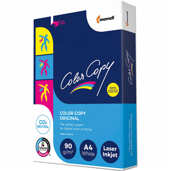 Some of the most popular applications for Colour Copy are presentations, invitations or customer brochures Extra smooth surface, excellent for full colour printouts Ideal whiteness for true colour reproduction Environmentally friendly production, sourced from sustainable forests Colour Copy is CO2 neutral and carries the EU Ecolabel Ageing resistance ISO 9706 certified