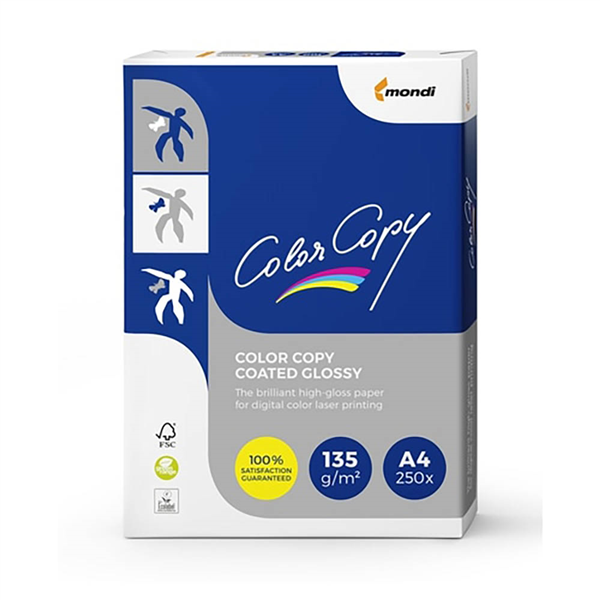 MONDI COLOR COPY A4 COPY PAPER GLOSSY COATED 135GSM WHITE PACK 250 SHEETS