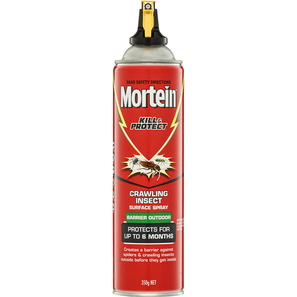 Mortein Kill and Protect Barrier Outdoor Surface Spray Crawling Insect creates a barrier against spiders and crawling insects outside before they get inside