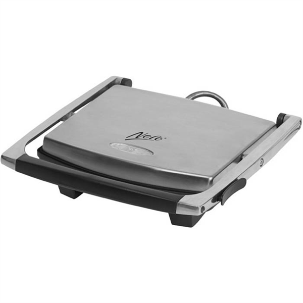 Nero Stainless Steel 4 Slice Sandwich Press Floating hinge caters for large contents and extra large non-stick plates for easy cleaning