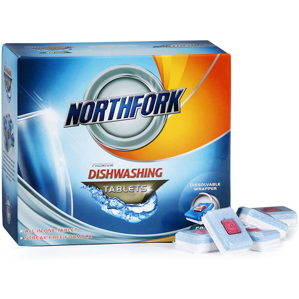 Northfork dishwashing tablets incorporate a superior cleaning formulation into one easy to use tablet