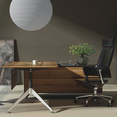 NOVARA EXECUTIVE DESK RIGHT HAND RETURN 2150 X 1850 X 750MM ZEBRANO TIMBER VENEER