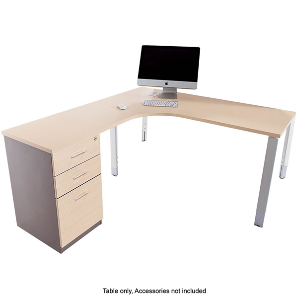 OBLIQUE HEIGHT ADJUSTABLE CORNER WORKSTATION LHS FIXED PEDESTAL 1500/1500 X 600/500 X 720MM SNOW MAPLE