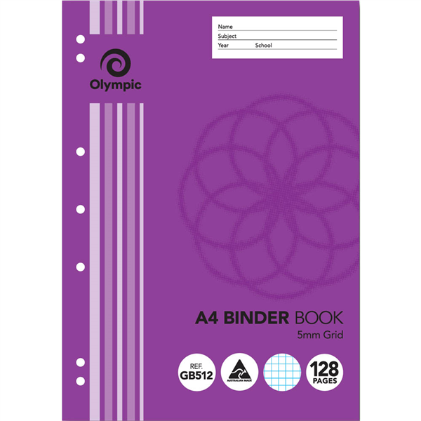 OLYMPIC GB512 BINDER BOOK 5MM GRID 128 PAGE 55GSM A4
