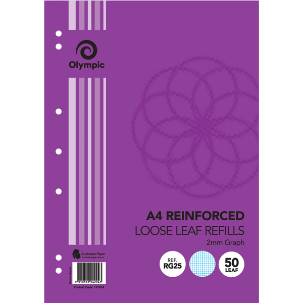 OLYMPIC RG25 REINFORCED A4 LOOSE REFILL 2MM GRAPH RULED 55GSM 50 SHEETS