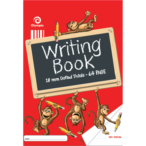 OLYMPIC WM186 WRITING BOOK DOTTED THIRDS 18MM 55GSM 64 PAGE 335 X 240MM MONKEYS