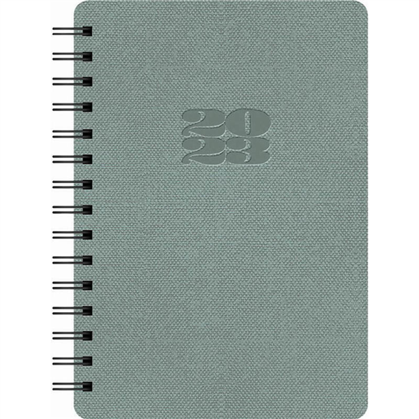 Minimal-yet-meticulous design in an attractive faux-cloth-textured cover made from vegan polyurethane - a uniquely sophisticated touch Features tabbed dividers and two storage pockets for loose papers Each month is separated with a durable mylar-coated tab Includes monthly, and weekly page views Planner pages Recyclable; printed with soy-based ink