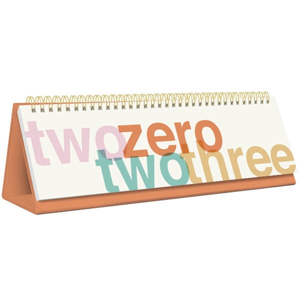ORANGE CIRCLE 2023 WIRO EASEL KEYBOARD CALENDAR WEEK TO VIEW 305 X 100MM RAINBOW STRIPES