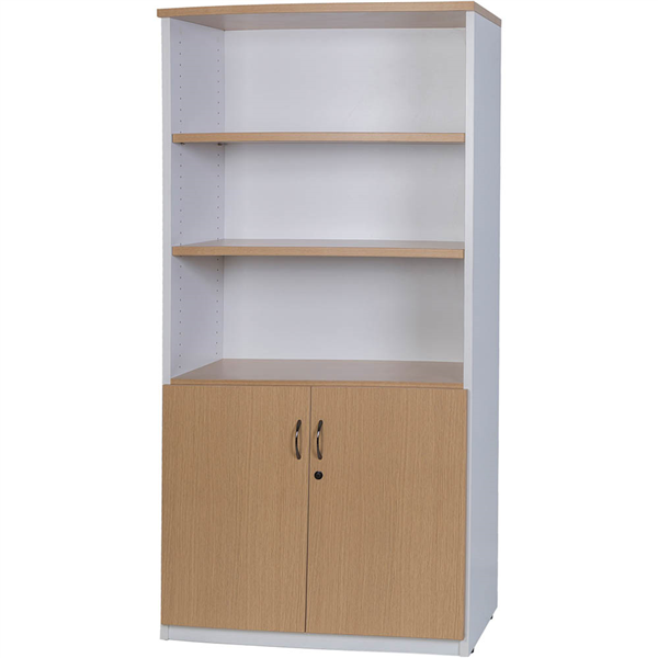 OXLEY HALF DOOR STATIONARY CUPBOARD 900 X 450 X 1800MM OAK/WHITE