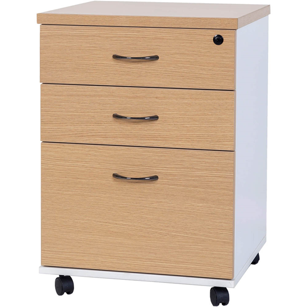 OXLEY MOBILE PEDESTAL 2 DRAWER 1 FILE OAK/WHITE
