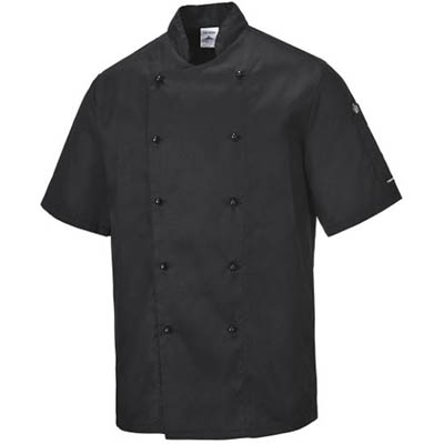 Designed for hot environments, this short sleeve jacket will keep you feeling cool and looking good The classic styling offers a range of high quality features including easy care fabric and a handy sleeve pocket Hard wearing durable twill fabric with excellent dye retention Five rows of poppers which can be interchanged Reversible front Sleeve pocket Mandarin collar Detachable buttons which can be removed or replaced