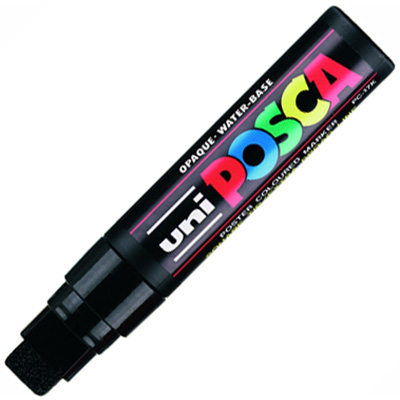 POSCA PC-17K extra-broad chisel tip is the member of the POSCA range designed for experts POSCA PC-17K's XXL size tip is a favourite of professionals and artists for creating large-scale artwork POSCA markers adhere perfectly to all types of paper and cardboard such as tracing paper, photo paper or cardboard The paint does not bleed through paper and is resistant through time The adherence can be further optimized using varnish