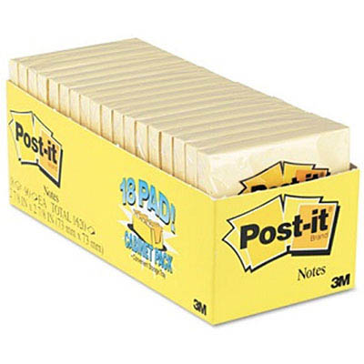 POST-IT 654-18CP ORIGINAL NOTES 76 X 76MM YELLOW CABINET PACK 18
