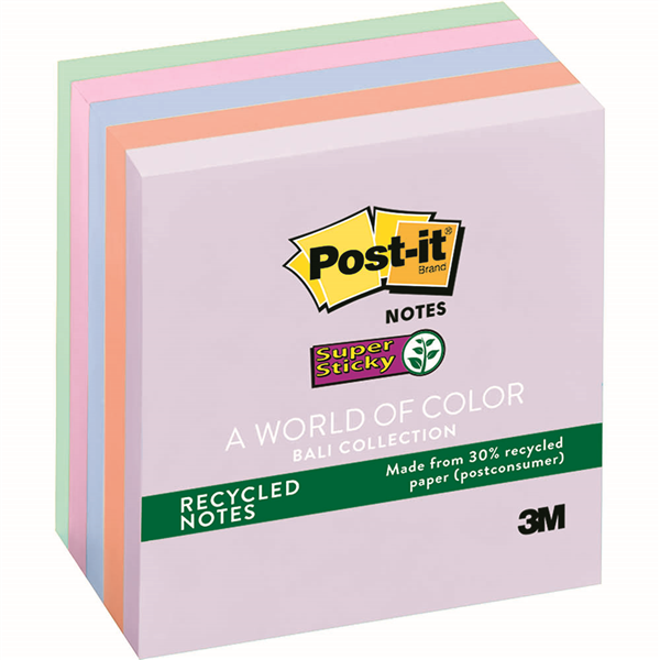 POST-IT 654-5SSNRP RECYCLED SUPER STICKY NOTES 76 X 76MM BALI PACK 5