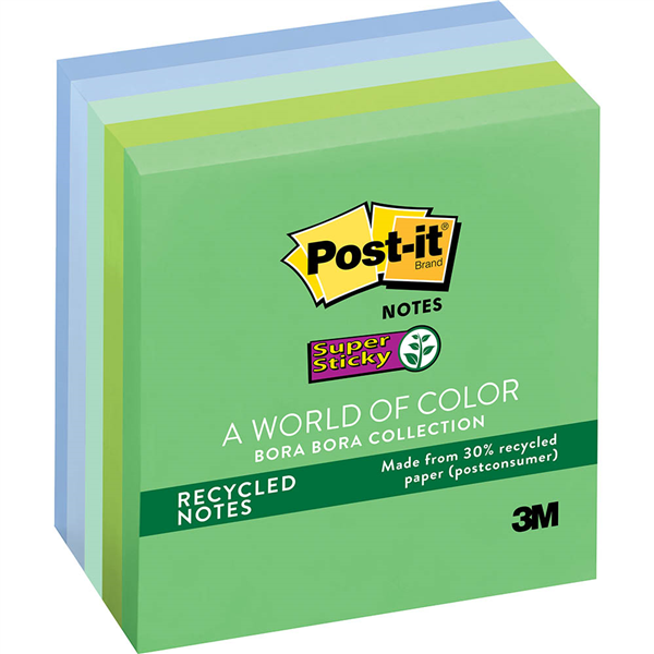 POST-IT 654-5SST RECYCLED SUPER STICKY NOTES 76 X 76MM BORA BORA PACK 5