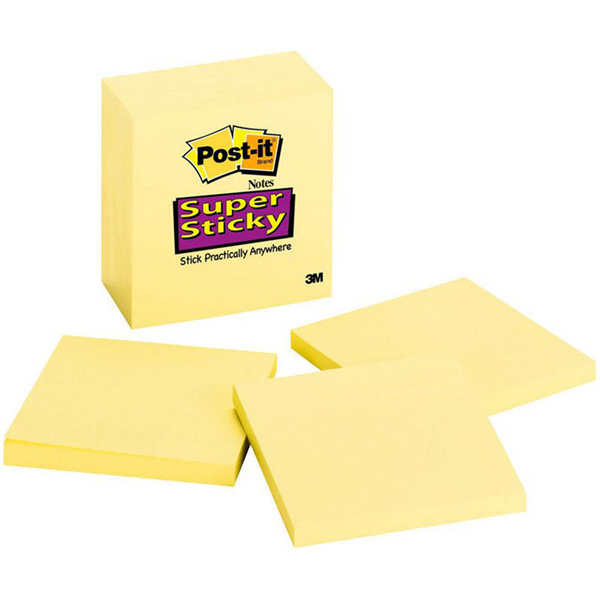 POST-IT 654-6SSCY SUPER STICKY NOTES 76 X 76MM CANARY YELLOW PACK 6