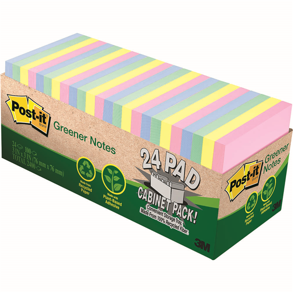 POST-IT 654R-24CP-AP 100% RECYCLED GREENER NOTES 76 X 76MM HELSINKI CABINET PACK 24
