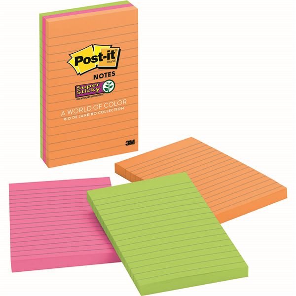 POST-IT 660-3SSUC SUPER STICKY LINED NOTES 101 X 152MM RIO DE JANEIRO PACK 3