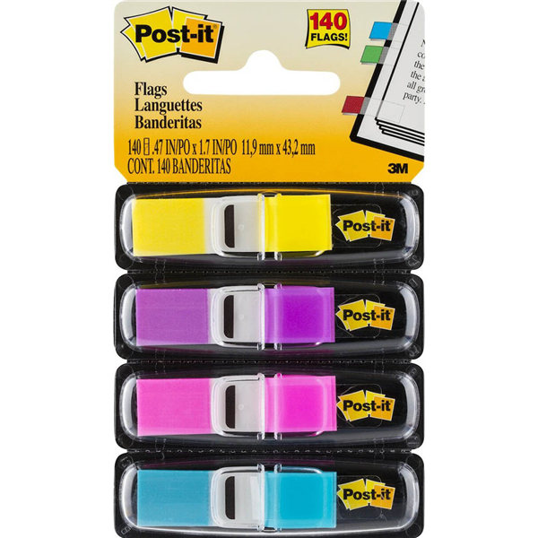 The adhesive makes flags stay put and lets you reposition them as well The dispenser is great as a stand-alone or in a sleek dispenser For over 40 years, the Post-it Brand has helped people be more productive, communicate better and express themselves in a number of creative ways Flags make it simple to mark, flag or highlight important information Eye-catching, colourful flag in detachable dispenser is easy to spot Great for colour-coding Each flag sticks securely, removes cleanly Dispenses one flag at a time Use them to draw attention to critical items, index, file or colour-code Removable flag mark your place, tab and highlight information Copy shows through flags