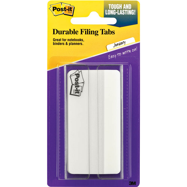 Great for organizing your file drawer Post-it tabs create order Easily organize file folders White tabs give you flexibility to organize by colour Durable, writable, repositionable Also great for binders, planners and notebooks Sticks securely, removes cleanly White, 25 tabs per On-the-Go dispenser, 2 dispensers per pack