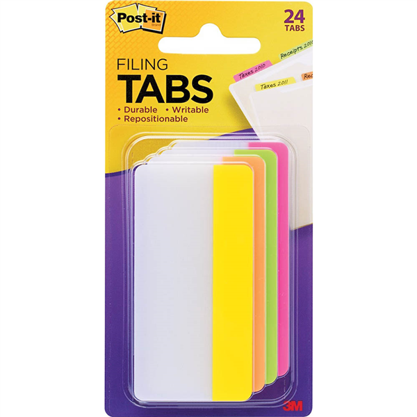 Whether you are organising the families favourite recipes, tabbing important exam information or organising work files and documents, Post-it Tabs withstand constant use Sturdy in design Post-it Tabs stick securely and remove easily when required Label and colour code quickly and easily Post-it Tabs create order Easily organise binders into sections Assorted colours give you flexibility to organise by colour Durable, Writeable, Repositionable Also great for planners, notebooks and file folders Sticks securely, removes cleanly