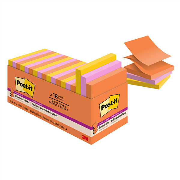 These accordion-style notes pop up one after another from a Post-it Note Dispenser Post-it Super Sticky Notes have 2X the sticking power The super sticky adhesive lets you leave your note on almost any vertical surface Perfect size for to-do lists and leaving notes of encouragement Unique adhesive reliably sticks and re-sticks so your message can stay front and centre Move your notes with you throughout the day to capture great ideas The paper in Post-it Notes is sourced from certified, renewable and responsibly managed forests