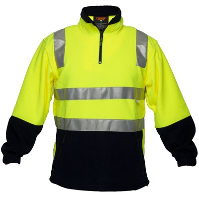 PRIME MOVER HV215 HI-VIS POLAR FLEECE JUMPER WITH TAPE LONG SLEEVE 1/4 ZIP 2-TONE