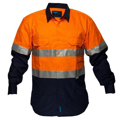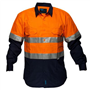 2 Tone Hi Vis Preshrunk 100% Regular Weight Long Sleeve cotton Drill Shirt with tape
