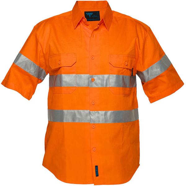 Full Hi-Vis Preshrunk 100% cotton Regular Weight Short Sleeve Drill Shirt with Tape