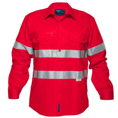 PRIME MOVER MA301R HI-VIS LIGHTWEIGHT COTTON DRILL SHIRT LONG SLEEVE WITH TAPE RED