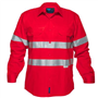 Solid Hi Vis Preshrunk 100% Lightweight Long Sleeve red cotton drill shirt with tape