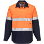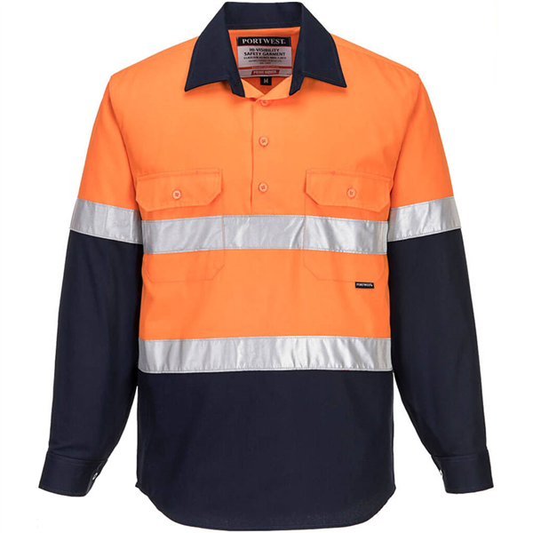 High visibility two tone regular weight long sleeve closed front shirt with tape