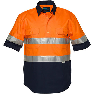 High visibility two tone regular weight short sleeve closed front shirt with tape