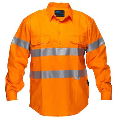 PRIME MOVER MC191 HI-VIS DRILL SHIRT LONG SLEEVE CLOSED FRONT WITH TAPE FULL COLOUR