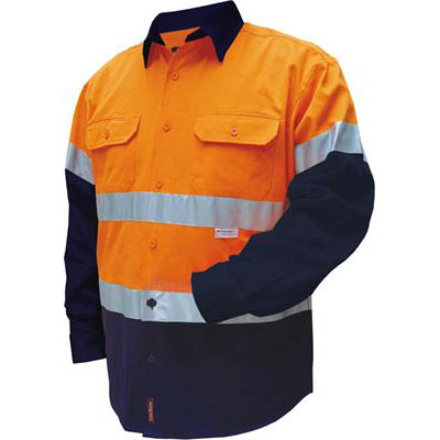 PRIME MOVER MF101 COTTON DRILL SHIRT FLAME RETARDANT WITH REFLECTIVE TAPE 2-TONE