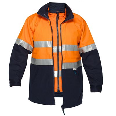 PRIME MOVER MJ777 HI-VIS JACKET 2-TONE 4-IN-1 WITH VEST REFLECTIVE TAPE ZIP ORANGE NAVY SMALL