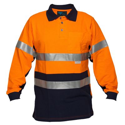 PRIME MOVER MP619 HI-VIS COTTON PIQUE POLO SHIRT LONG SLEEVE WITH TAPE 2-TONE