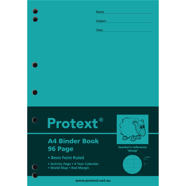 PROTEXT BINDER BOOK RULED 8MM 70GSM 96 PAGE A4 SHEEP ASSORTED