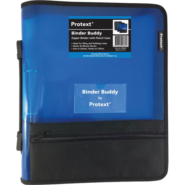 PROTEXT BINDER BUDDY WITH ZIPPER 2 RING WITH HANDLE PLUS PENCIL CASE PLUS POCKETS 25MM BLUE