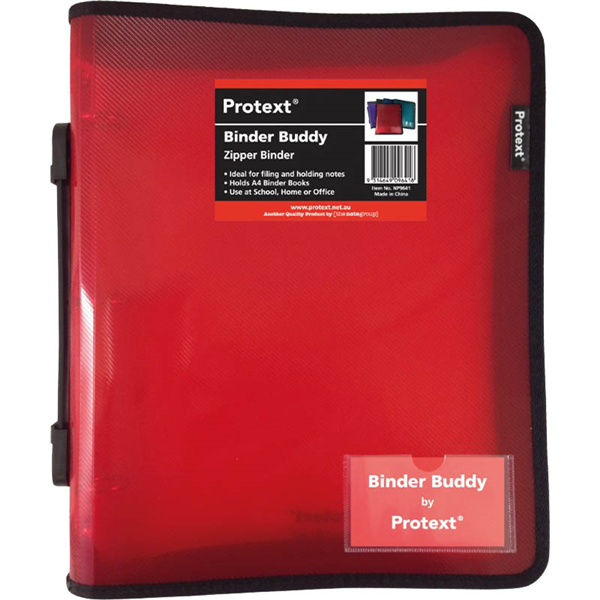 PROTEXT BINDER BUDDY WITH ZIPPER 3 RING WITH HANDLE 25MM RED