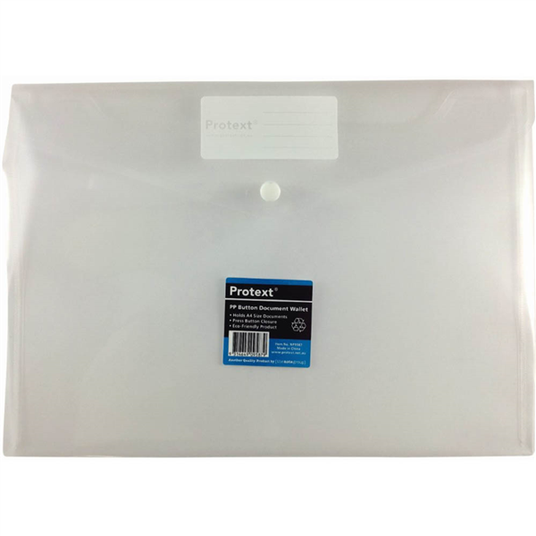 PROTEXT DOCUMENT WALLET WITH BUTTON CLOSURE A4 PP CLEAR