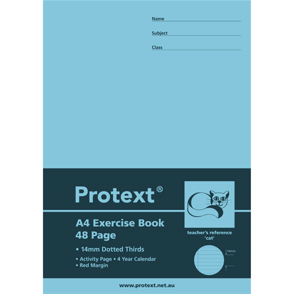 PROTEXT EXERCISE BOOK DOTTED THIRDS 14MM 70GSM 48 PAGE A4 CAT ASSORTED