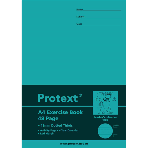 PROTEXT EXERCISE BOOK DOTTED THIRDS 18MM 70GSM 48 PAGE A4 DOG ASSORTED