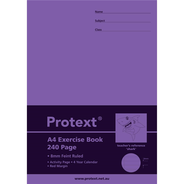 PROTEXT EXERCISE BOOK RULED 8MM 70GSM 240 PAGE A4 SHARK ASSORTED