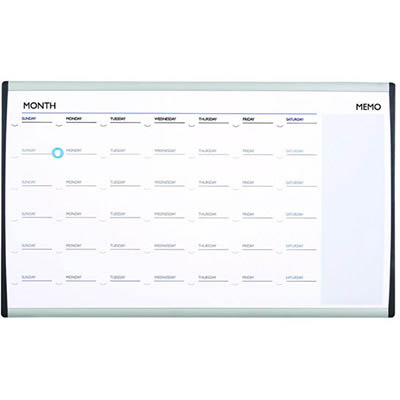 Post photos and notations to the board with any magnet and jot down notes quickly with dry-erase marker Durable monthly calendar doubles as bulletin board Delivers quality planning and organizing performance in personal workstations Extend surface life with Quartet cleaning solutions Flexible mounting system secures to cubicles or dry-wall Adjustable clips ensure straight and level installation Lightweight Arc frame complements most decor