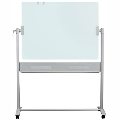 Tempered, dry-Erase glass will not stain, ghost, scratch or dent Silver mobile legs match the modern work environment Professional and modern glass mobile board Glass board is double sided Frosted white tempered glass Includes adjustable hooks for use with flipchart pads Only Quartet infinity circle magnets (Or any extra heavy duty magnets) work with quartet glass Suitable for heavy use Glass board is frameless