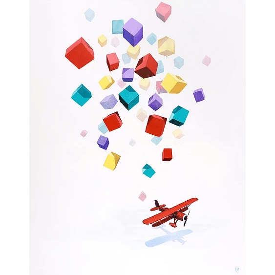 QUIETPRINT ACOUSTIC ART BY ROSS MORGAN LARGE COLOURED BLOCKS AND PLANE