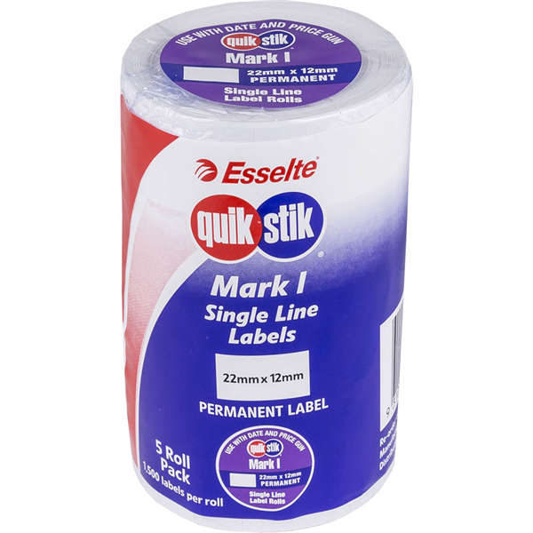 QUIKSTIK MARK I PRICING GUN LABEL PERMANENT 1500 LABELS/ROLL 22 X 12MM WHITE PACK 5