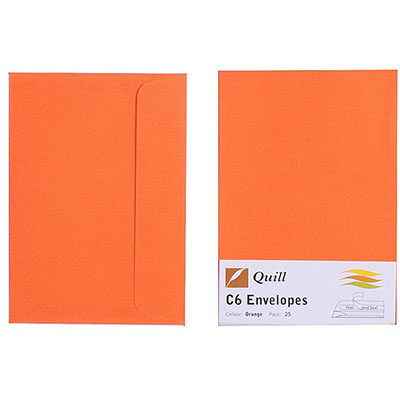 QUILL C6 COLOURED ENVELOPES PLAINFACE STRIP SEAL 80GSM 114 X 162MM ORANGE PACK 25