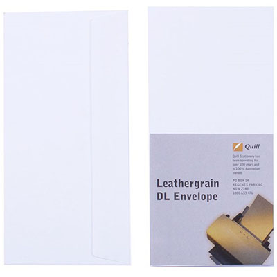 QUILL DL LEATHERGRAIN ENVELOPES PLAINFACE STRIP SEAL 100GSM 110 X 220MM WHITE PACK 25